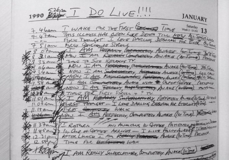 Pero, ¿cómo podía acordarse de escribir si no recordaba nada? Con los años, el acto de escribir se volvió tan automático como respirar o caminar. Sus manos buscaban el bolígrafo al despertar del mismo modo que los dedos de un pianista buscan las teclas y comienzan a tocar una melodía. El diario actuaba como un puente entre momentos que para él estaban completamente desconectados. Clive no recordaba lo que había escrito 30 segundos antes, pero ahí estaba la evidencia física en la página: su letra como prueba de una vida que transcurría sin él. Su cerebro no guardaba continuidad, pero el papel sí.